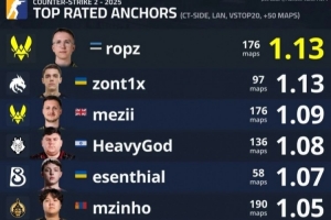 2025赛季CS2顶尖选手主防者评分榜公布:ropz居首