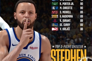 体育资讯12月24日讯 今日NBA 2K官方晒出了最新联盟三分能力值前十球员,具体如下: