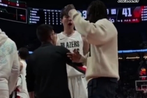 体育资讯12月29日讯 今日开拓者114-108主场战胜凯尔特人,比赛中的一次暂停时朱·霍勒迪对杨瀚森进行了指导。
