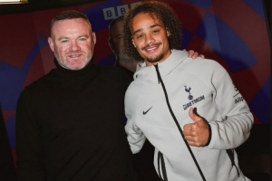 体育资讯12月13日讯 热刺攻击手哈维·西蒙斯更新社媒动态,晒出与鲁尼的合照。