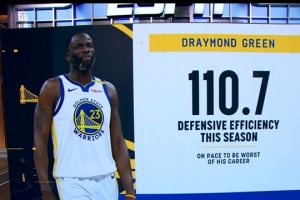 球员防守效率指的是一名球员在场时,球队每百回合让对手得到的分数。