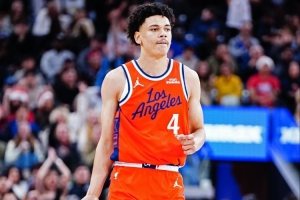 体育资讯1月6日讯 NBA常规赛,快船主场103-102险胜勇士,小卡在场边接受了媒体采访。