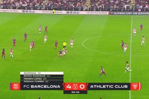 比赛第38分钟,拉菲尼亚再入一球,将比分扩大为巴萨4-0毕尔巴鄂!