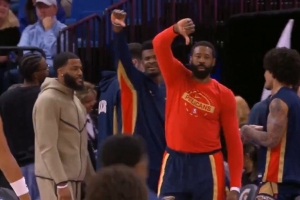 GIF-锡安抢断反击扣篮平平无奇 小乔丹倒大拇指表达不满