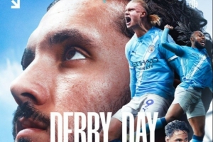 海报中哈兰德、谢尔基、塞梅尼奥、多库以及赖因德斯出镜,球队官推配文写道:“德比日来临!”