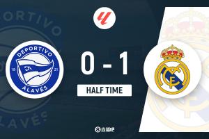 半场结束,皇马暂1-0阿拉维斯。