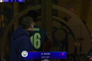 体育资讯01月21日讯 欧冠联赛阶段第7轮,曼城客战博德闪耀。61分钟,罗德里2分钟2黄被罚下。