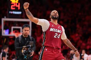 本场比赛,热火后卫诺曼·鲍威尔出战31分钟21投5中,三分11中2、罚球4中4拿到16分10篮板1助攻1抢断,正负值+7。