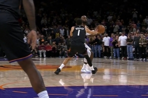 经教练挑战后回看复核,判定对布克的三分犯规吹罚无误。布克在詹姆斯做出向上投篮动作时,主动接触其右臂/手腕部位。