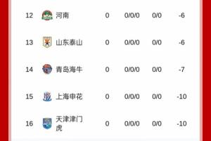 新赛季的中超积分榜如图所示,9队将以负分开局!
