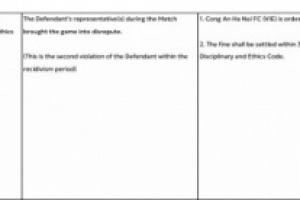 亚足联官方表示,河内公安的行为损害比赛声誉,违反亚足联纪律和道德准则第50.1条,这是河内公安第二次违规,对该队处以6250美元罚款,罚款应自本决定送达之日起30日内支付。