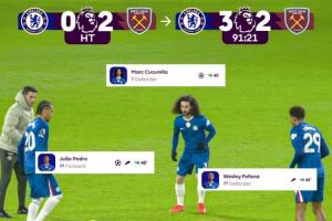 英超官方发布图文,表示:“罗塞尼尔的中场换人📈📈📈,这3人上阵后,帮助切尔西逆转取胜。”