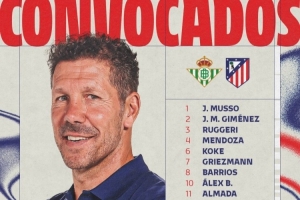 马竞公布战贝蒂斯大名单:阿尔瓦雷斯领衔锋线,卢克曼在列